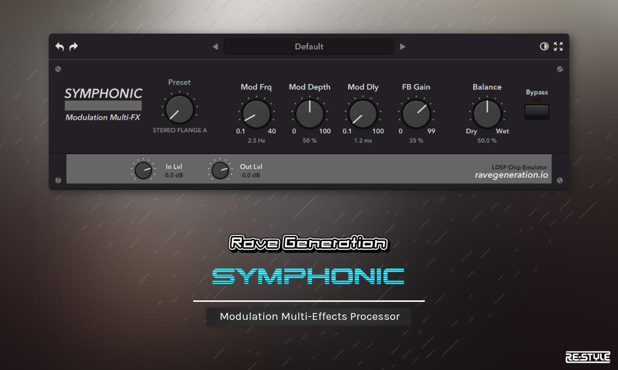 DRIVE: 0–100 % analog-style saturation; Pre/Post position switch; Drive Mix for parallel clean/driven blend. In LP FM 12, low Drive also boosts FM depth.